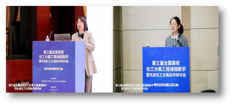 在化工分离工程课程建设研讨分论坛中,化学与化工学院教师罗莹作了题为“基于案例分析的分离工程教学体会”报告,介绍了在化工分离工程教学中案例教学的改革与实践。在先进化工分离技术研究与应用分论坛中,化学与化工学院教师郭婧作了题为“超重力分离技术创新与工程应用”报告,对超重力分离技术及其工程化应用进展进行了介绍。