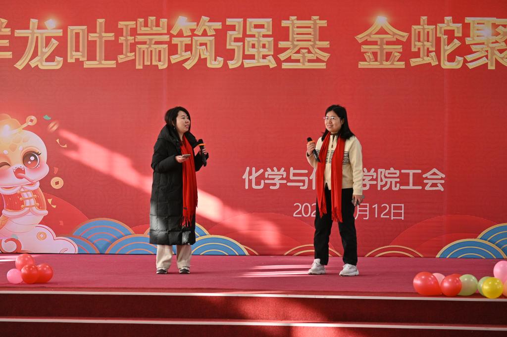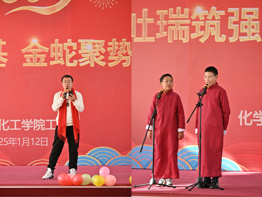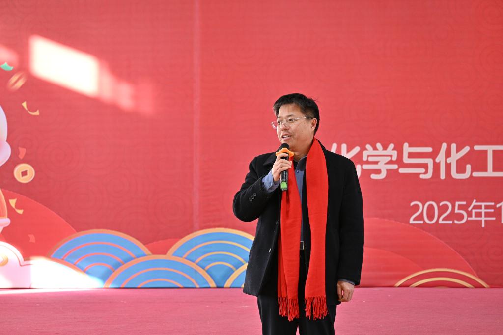 党政一体,成就可期。联欢会初始,祁贵生院长和吴志远书记分别作了新年贺词,总结了2024年学院在党建、教学、科研、学科建设、学生培养等方面取得的成绩,希望全院教师在2025年进一步加强学习,切实提高自身能力,为学科、学院和学校的发展贡献力量。材料科学与工程学院党委书记廖海洪在致辞中表示,非常高兴来参加化学与化工学院新年联欢会,看到很多熟悉的面孔,倍感亲切,希望学院发展越来越好!
