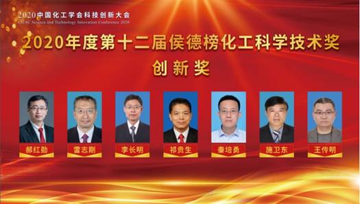 2020年9月15日,在北京召开的2020中国化工学会科技创新大会上,第十二届“侯德榜化工科学技术奖”隆重颁发。中国化工学会理事长、中国工程院院士戴厚良、中国科学技术协会书记处书记吕昭平、清华大学费维扬院士和金涌院士、中国科学院副院长张涛院士、大连理工大学蹇锡高院士、华东理工大学钱锋院士、中科院过程所张锁江院士、中国石油和化学工业联合会副会长傅向升、中国化工学会副理事长兼秘书长华炜、中国石油天然气集团有限公司科技管理部总经理匡立春等出席大会并向获奖者颁发证书。中国化工学会副秘书长王玉庆宣读了授奖决定。