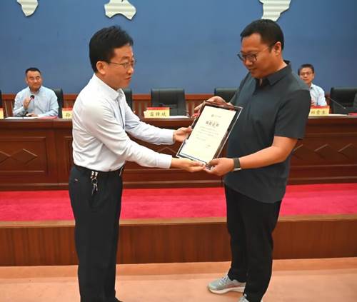 5月25日上午,“望山”奖学金捐赠仪式暨颁奖典礼在我校图书馆报告厅举行。校党委副书记雷锋斌出席颁奖仪式,代表学校接受企业捐赠,并为企业代表颁发捐赠证书。学生工作部负责人与企业代表孙召通签订了捐赠协议,校企领导共同为获奖学生代表颁奖。