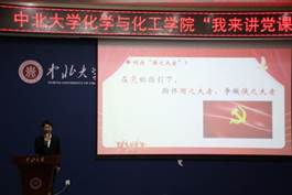 为全面深入学习贯彻习近平新时代中国特色社会主义思想和党的二十大精神,切实推进主题教育走深走实,2023年5月26日,由化学与化工学院党委主办、党建工作办公室承办的第三届“我来讲党课”微党课大赛决赛在瑾瑜国际会议中心成功举办。化学与化工学院党委书记廖海洪、制药工程系学生党支部书记秦秀峰及各学生党支部代表担任此次大赛评委。