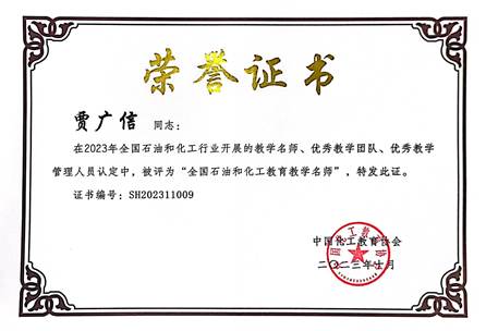 我院新获2023年全国石油和化工教育教学名师和优秀教学团队荣誉